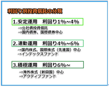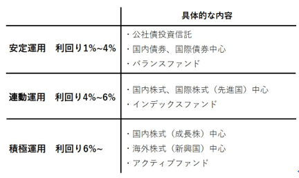 ãã®åŸå ·äœçã«èŠãŠãããŸããããããèæ ®ããããã§æ¯èŒçããŒãªã¹ã¯ãªå®å®éçšã®å©åãã©ã€ã³ã¯1~4%ããããªã¹ã¯ãåããªã¿ãŒã³ãçãã«ãã£ãŠ4%~6%ãããããã¢ã¯ãã£ããã¡ã³ããå€åœæ ªãããŒããã©ãªãªã«çµã¿å ¥ãããã¡ã³ãã§ç©æ¥µçéçšãçã6%~ãšããã®ãåœèšäºã§ã®å©åãå¥ã®3ã€ã®åé¡ã§ãã