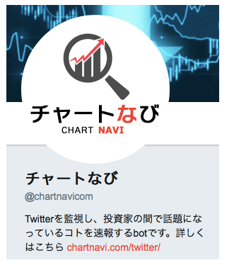そこで株やFXなどのトレーダー向けに、投資家の間で話題になった銘柄やツイート、WEBページなどを速報している「チャートなび」のツイッター(@chartnavicom)を利用してみてはいかがでしょうか。