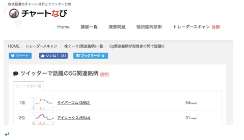 このツイッターアカウントでは、数千人におよぶトレーダーのツイートやリツイートをプログラムで24時間監視し、一時的に盛り上がっている話題を検知したら自動的にツイートする仕組みとなっており、5G銘柄を含む銘柄の動きをいち早く知るきっかけとなるかもしれません。