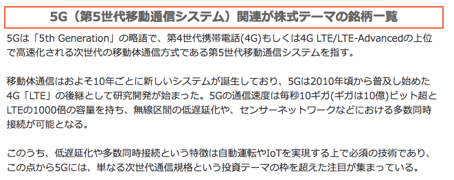 5Gのサービス開始を目指す2020年に向けて、ますますその期待は高まっていくと予想され、関連銘柄への期待も大きくなります。