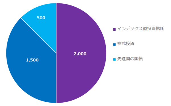 まず、市場平均に連動するインデックス型投資信託を中心に投資します。残りの2,000万円をすべて先進国国債に投資しても良いのですが、世界的な低金利で魅力が下がっているので、いくら低リスク狙いでもわざわざ投資するべきとまでは言えないので、500万円としました。