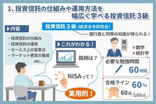 1. 投資信託の仕組みや運用方法を幅広く学べる!投資信託3級