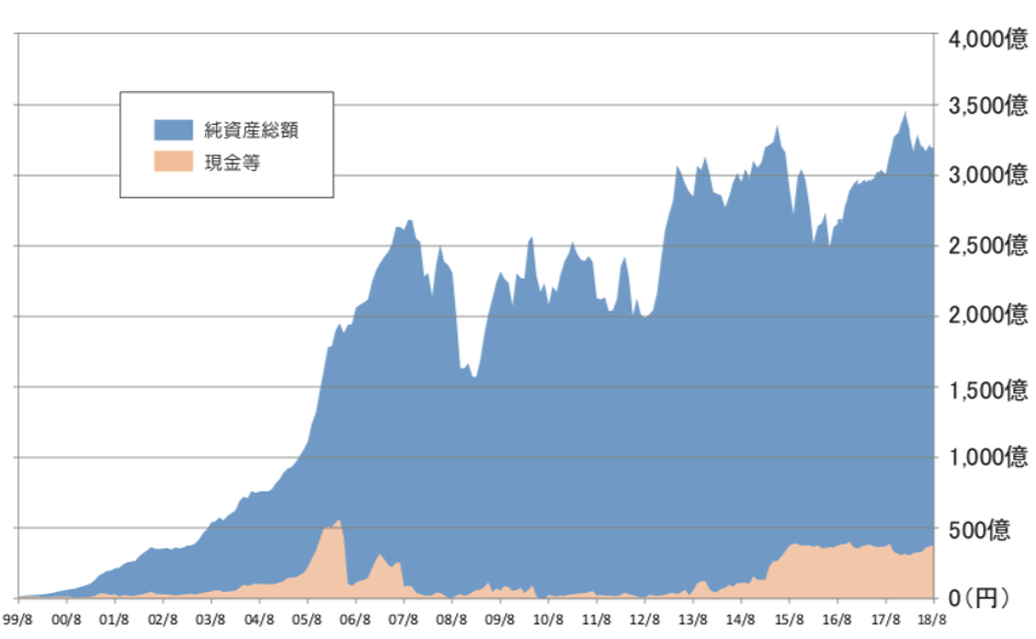 (参考:純資産総額・現金等の推移 さわかみ投信)
