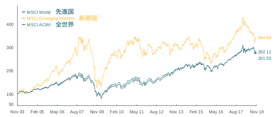 ïŒMSCIã€ã³ããã¯ã¹ (ç±³ãã«ããŒã¹) ã»2003/11~2018/11 åºæïŒMSCIïŒ