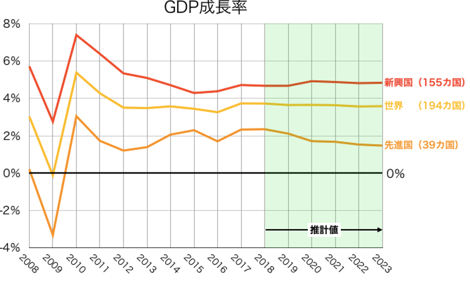 IMFã«ãããšã2018幎以éã®äžçå šäœã®çµæžæé·çã¯ã3ïŒ å°åŸåã§æšç§»ããæšèšãããŠããŸãã