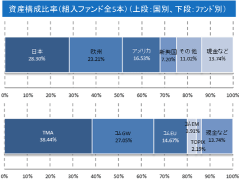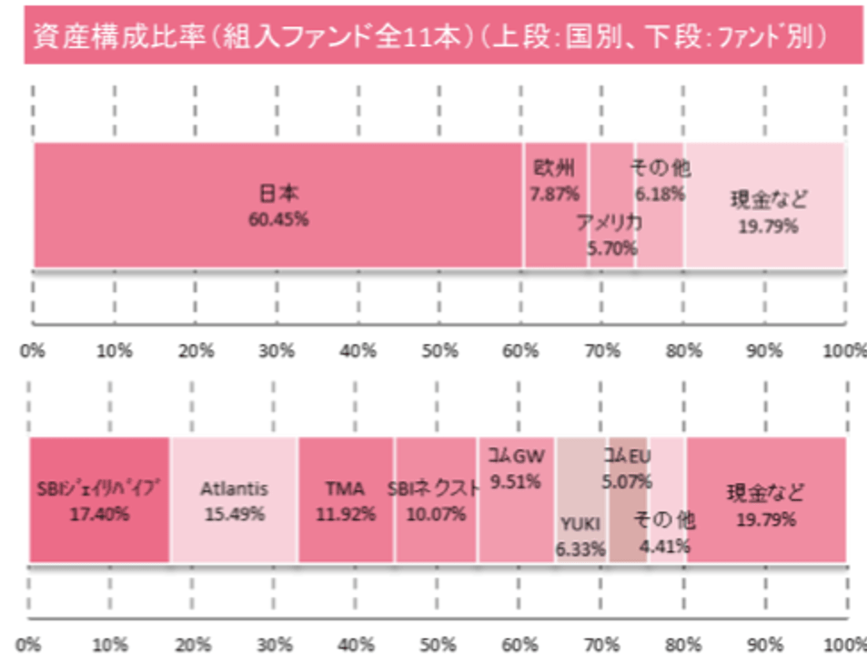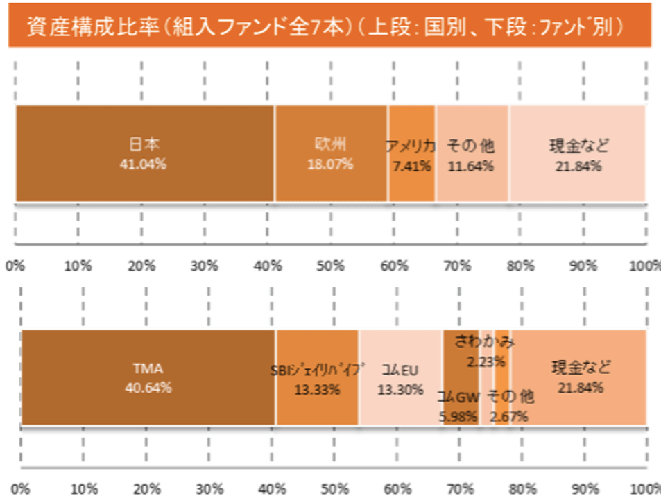 ファンド・オブ・ファンズでは、どのファンド(ベビーファンド)が、どのくらいの割合で組み入れられるかは、ファンドに一任されます。