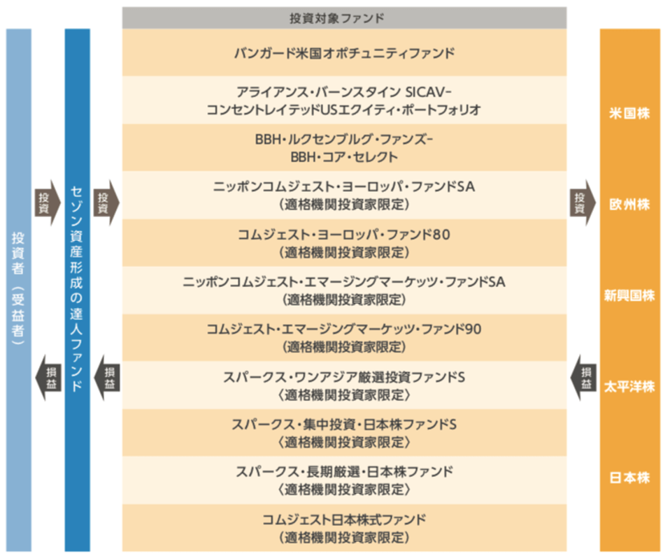 | 【日本を含む世界の株式へ厳選分散投資】 30か国以上の国の厳選された企業の株式へ国際分散投資を行うアクティブ・ファンド。それぞれの地域に強みを持ち、安全性や長期的な収益力を基準に選別投資を行うファンドを投資対象とする。短期的な市場の動向ではなく、各ファンドが投資対象とする株式市場の規模などを考慮し、長期的な視点で資産配分が決定される。原則ほぼ100%が株式に投資されるためリスクも高くなるが、本質的価値よりも割安な価格で購入するバリュー投資によって、リスクを抑えながらより高いリターンが期待できる。 | |||