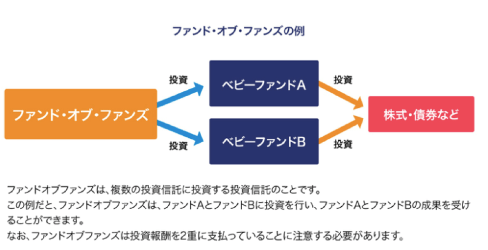 ファンド・オブ・ファンズの投資対象となる投資信託は、そのそれぞれが国内外の株式・債券・不動産などに分散投資が行われる商品です。