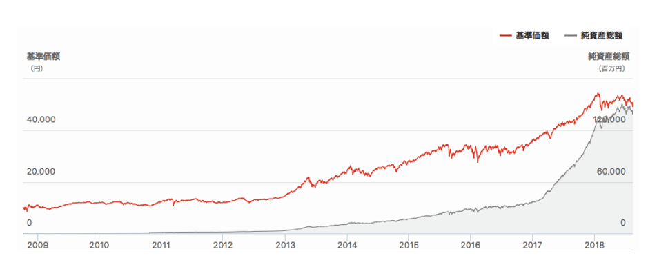 運用実績は直近1年で9.8%、設定来では159.3%(2018年8月31日時点)となっています。