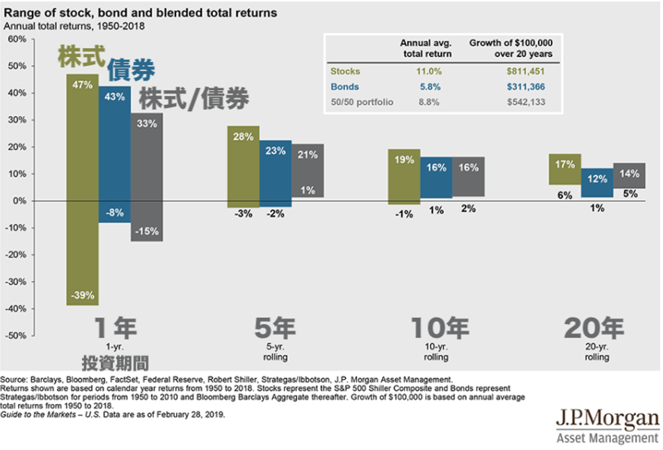 (計算期間:1950年〜2018年(米ドル建) 出所:J.P. Morgan Asset Management)