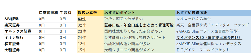 - 各金融機関におけるiDeCoを徹底比較