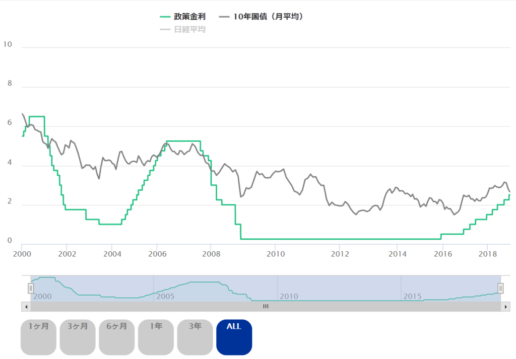 そして2015年からは再び徐々に政策金利が上昇、それに伴い10年国債の利回りも上がってきていることが分かります。