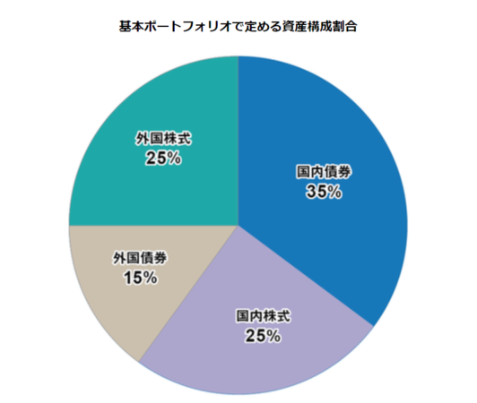 具体的なポートフォリオ例を見ると、自身のポートフォリオを作る際の参考になります。筆者がおすすめする具体例は、私たちの公的年金を運用しているGPIFの基本ポートフォリオです。
