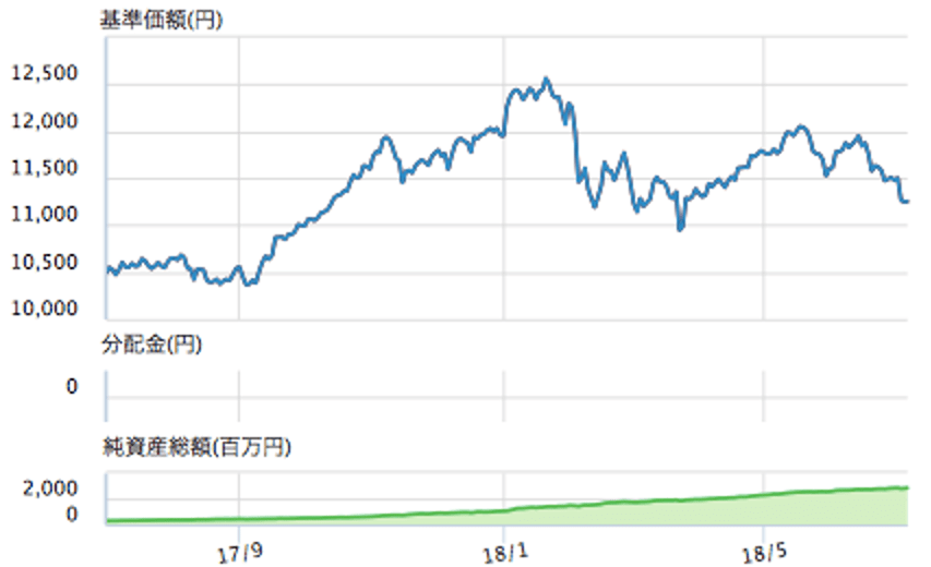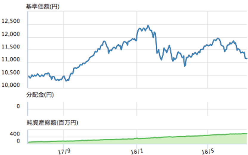 そのような投資信託は発売当初は人気が集まりやすいのですが、人気が冷めてしまうと徐々に価格が下がっていく傾向にあります。