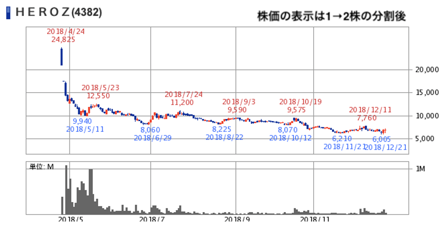 | HEROZ(4382)株価(株式分割調整後) | |||||||