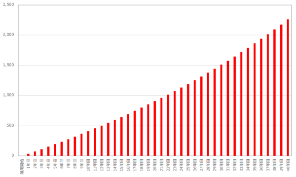 たずは、1幎間の目暙金額を決めたしょう。2,000䞇円を40幎間で準備するわけですから、幎間の目暙金額は2,000䞇円÷40幎50䞇円/幎です。月にすれば50䞇円÷12ヶ月4.25䞇円です。