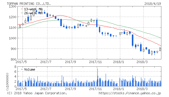 | 銘柄情報 | 大日本印刷と並ぶ大手印刷会社。印刷技術を基盤に液晶や半導体部材関連、包装資材などにも展開。1枚5円の電子タグ(SMARTICS-U)を発売するなど、セルフレジ普及に不可欠な電子タグの低コスト化に大きく貢献している。 |