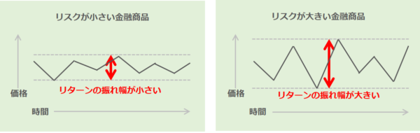 投資の世界でいう「リスク」とは、「危険」という意味ではなく、「リターンの振れ幅、変動幅」という意味で使われます。
