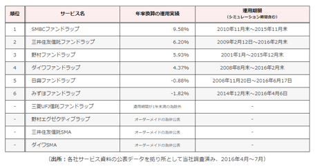 出典:ヘッジファンドダイレクト株式会社「ファンドラップ型サービスの『手数料控除後リターン』ランキング」
