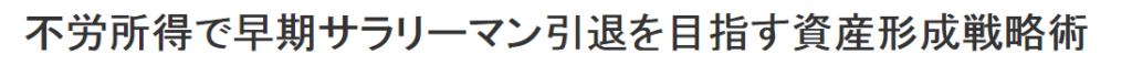(1)不労所得で早期サラリーマン引退を目指す資産形成戦略術