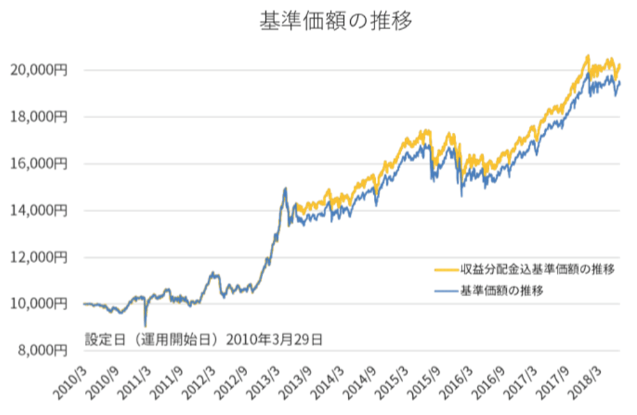 運用実績は直近1年で10.5%、設定来では161.4%(2018年7月31日時点)となっています。