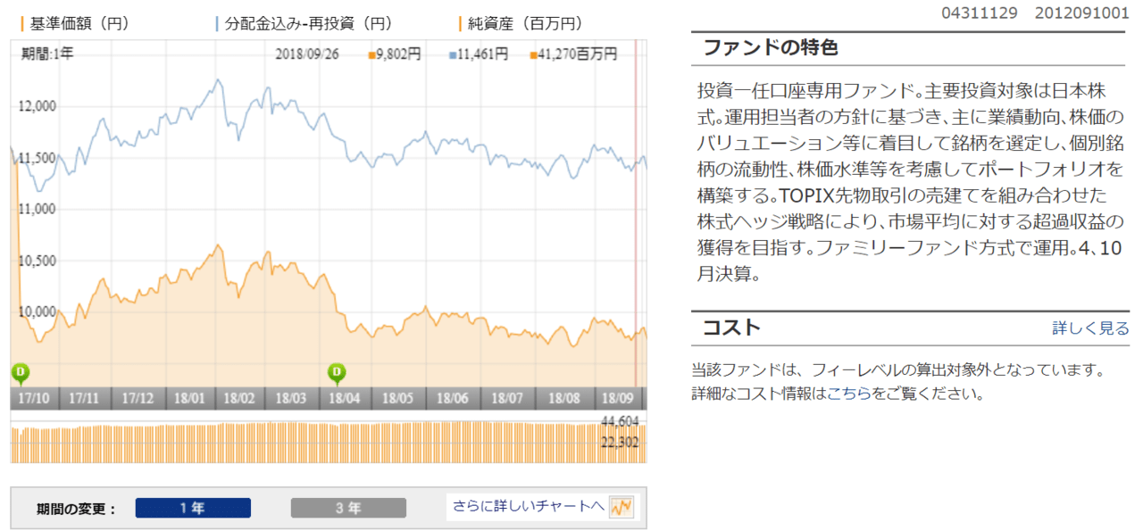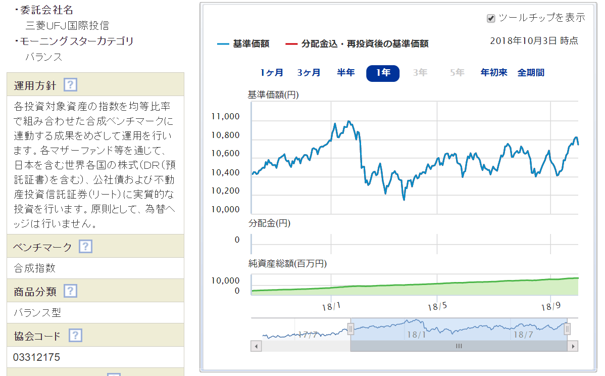 信託報酬が年率0.1728%(ひふみ投信は1.0584%)であり非常に低いこと、バランスよいポートフォリオとなっているため比較的ローリスクローリターンなファンドであると言えるでしょう。