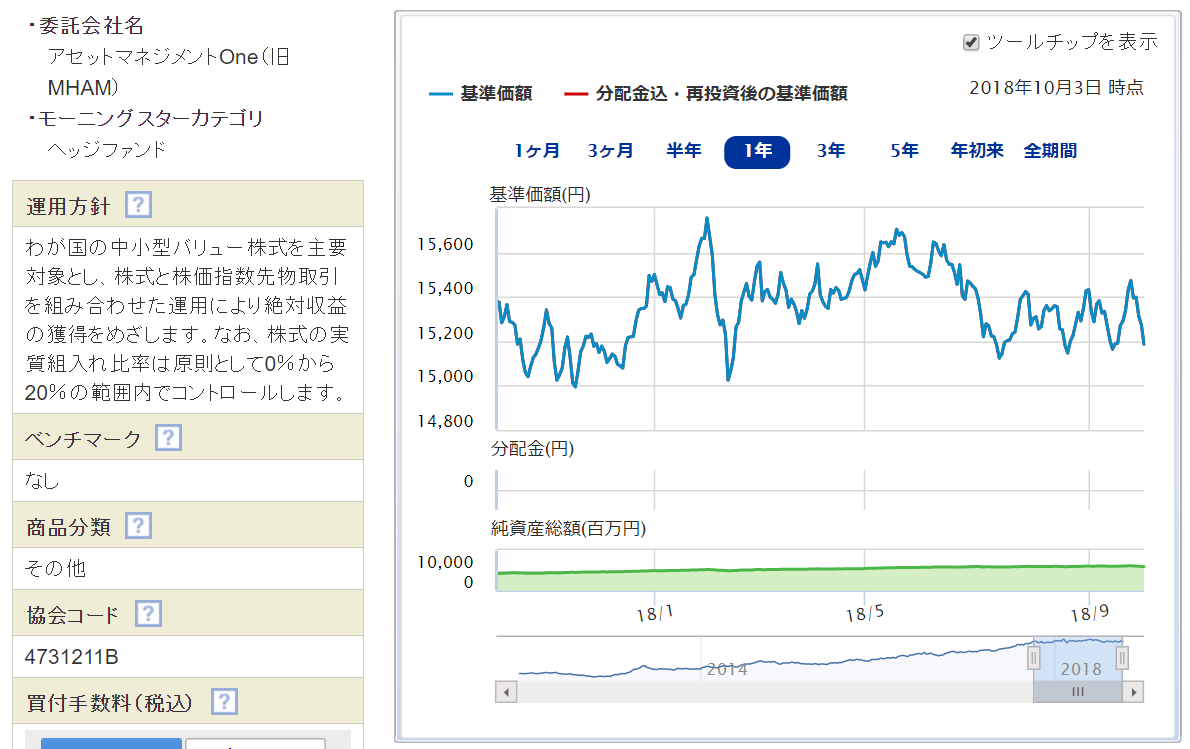 投資一任口座専用ファンドである当投資信託は、ひふみ同様「割安な銘柄に着目して投資を行う」バリュー投資をメインの投資指針としています。組み入れ銘柄はひふみより時価総額の小さな会社が多くなっていますが、ここ5年のトータルリターンは+10.46%と悪くなく、また分配金もあることが特徴的なファンドです。