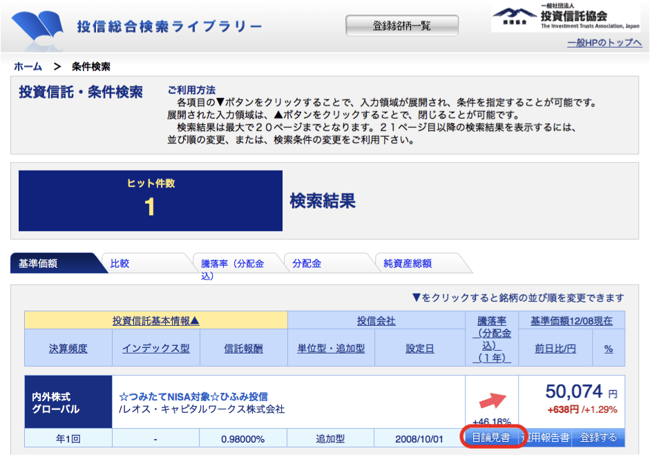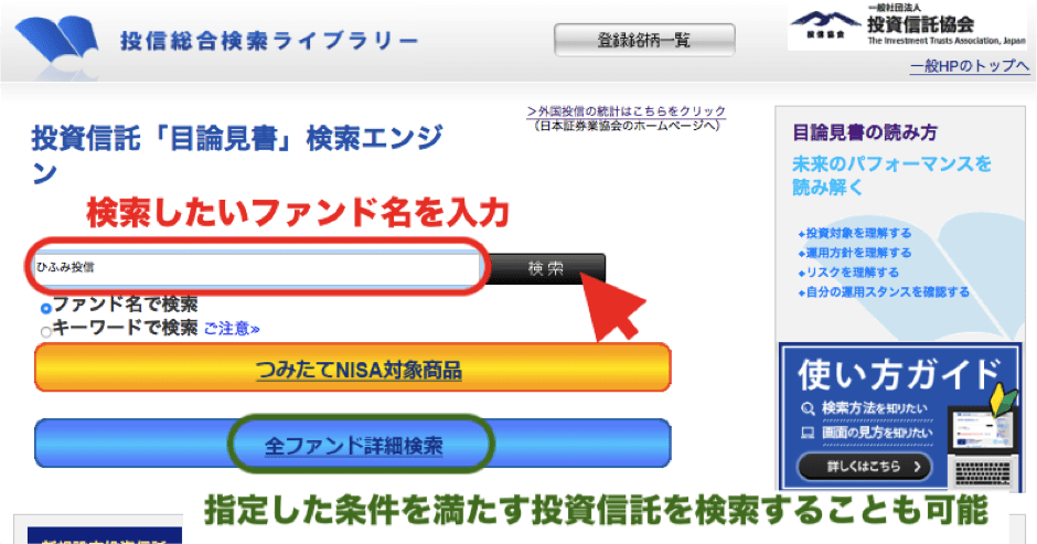 投資信託協会のサイトでは、投資信託の目論見書が検索できるようになっています。