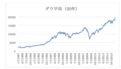 下のグラフは、1987年1月から2016年12月の30年間における日経平均株価の推移です。