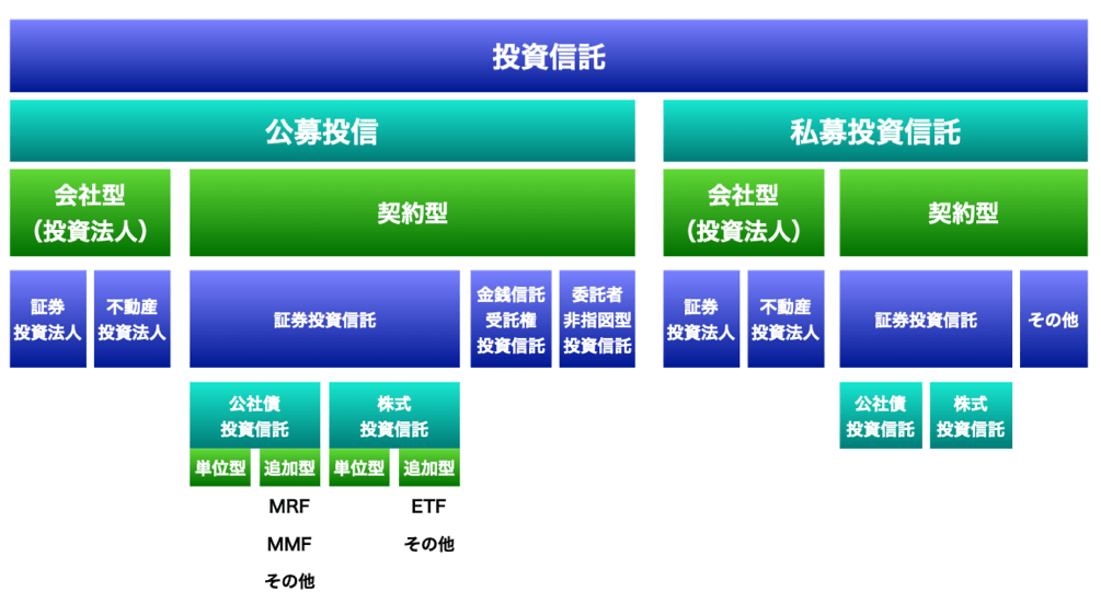投資信託(ファンド)にはさまざまな分類方法がありますが、投資信託および投資法人に関する法律(投信法)に定めのある、主な分類についてみていきましょう。