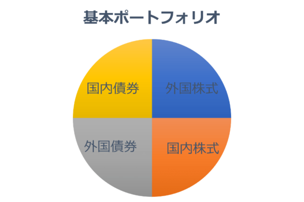 リスクを抑えて分散投資できる基本的なポートフォリオは、国内外の株式・債券を組み合わせる方法です。