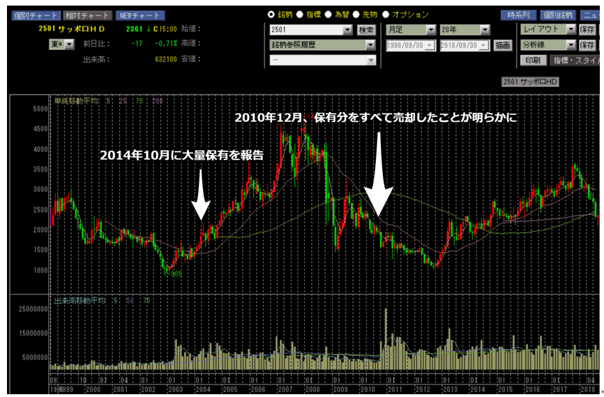 2004年10月に同社の株式を大量保有したのち、2008年ころから徐々に売却を進め2010年末には同社の投資を完全撤退です。