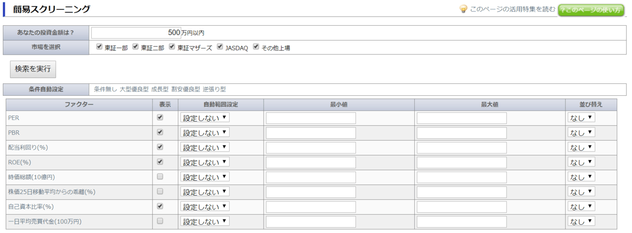 5、スクリーニング機能を使って投資する銘柄を探す