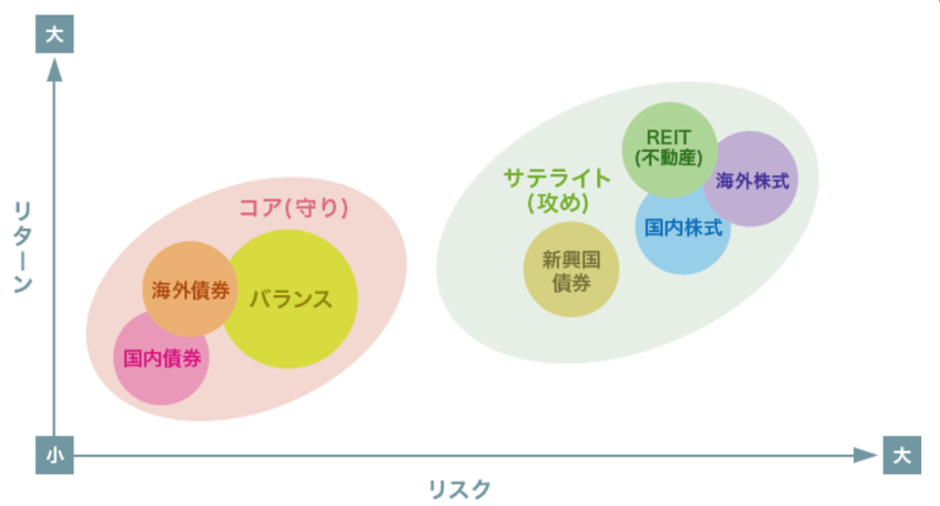 これらコア資産は期待リターンこそ低いものの、投資の経験や知識が少なくとも安全に運用できるのが特徴です。