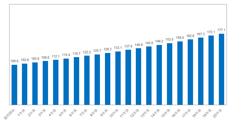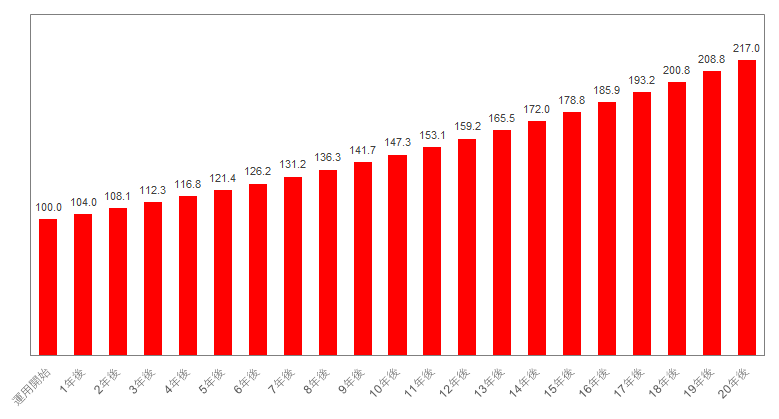 実際に計算してみると、100万円だった信託財産は20年後に約217万円まで成長することがわかります。