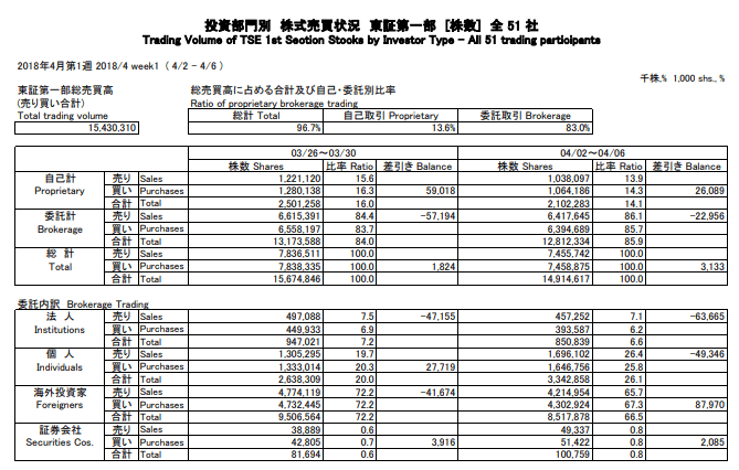 年間・月間・週間の3形式があり、週間売買状況は毎週木曜日(第4営業日、祝日等非営業日があればその分後ろ倒し)の 午後3時にデータが更新されます。