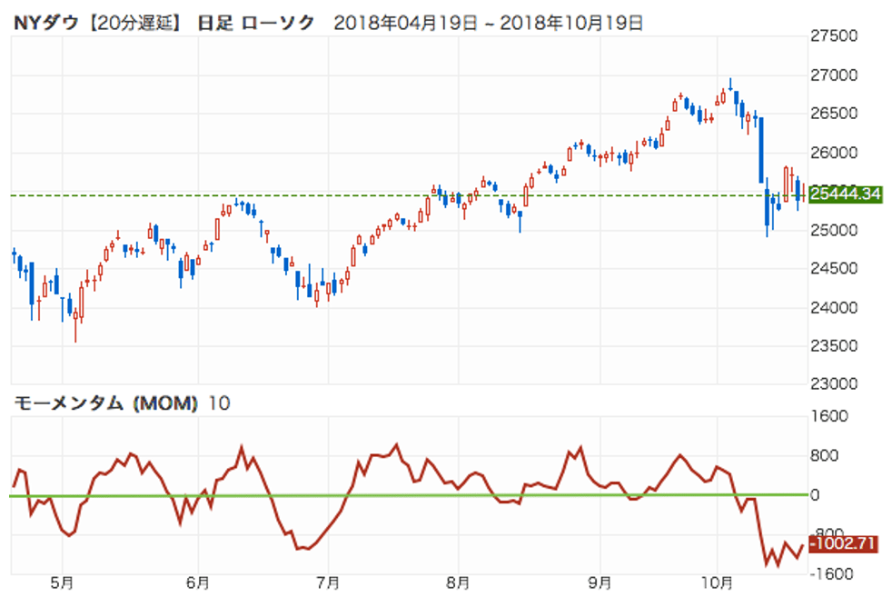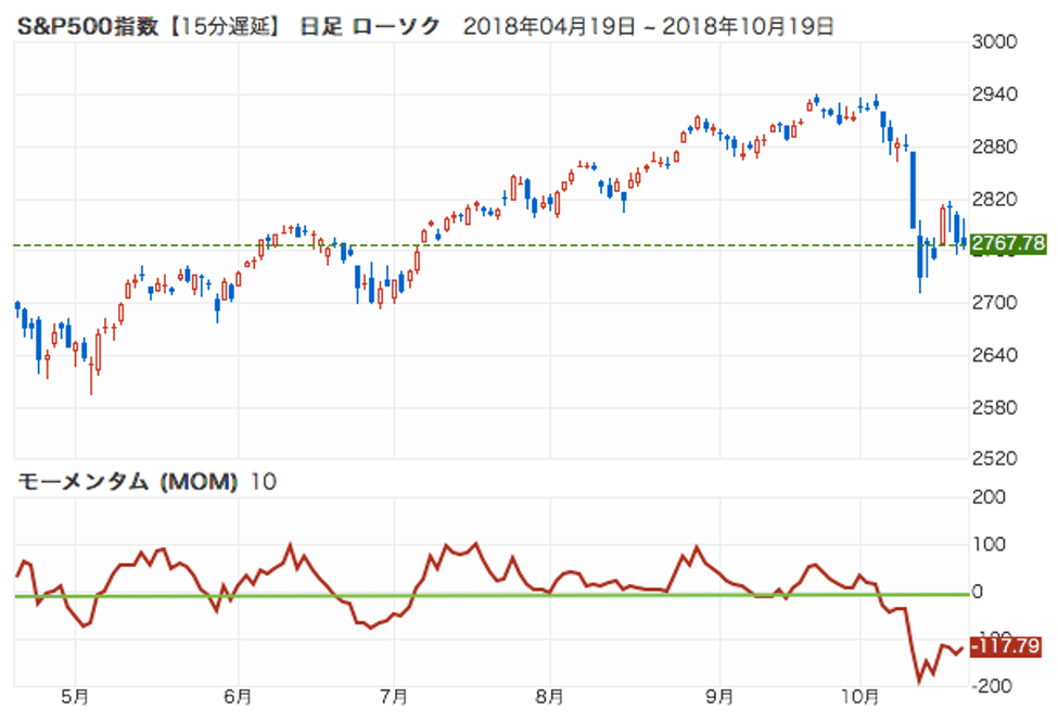 モメンタム=(当日の終値)ー(一定日前の終値)