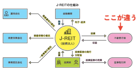 インフラファンドとREIT(リート・不動産投資信託)は、投資対象がインフラ資産と不動産という違いはありますが、その仕組み自体は基本的に同じです。
