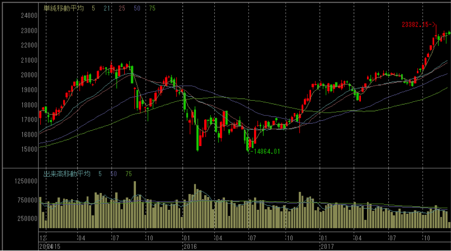 たた日経平均株䟡も単玔な右肩䞊がりずはいかないものの、䞋倀を切り䞋げながら段々ず䞊倀を曎新しおいたす。