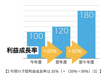 利益成長率50%といっても、100億円を150億円とするのと1兆円を1.5兆円にするのではその意味は大きく違ってきます。