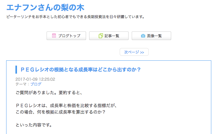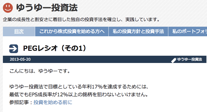 最後にPEGレシオに注目して株式投資している方のブログをご紹介します。