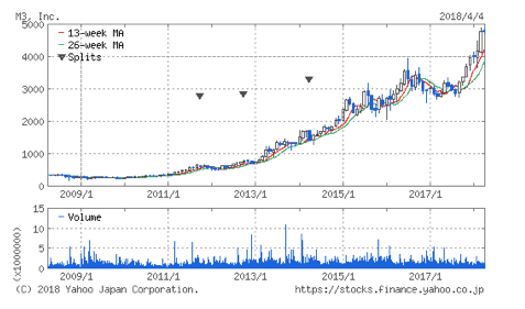 - 株価右肩上がりの万年高PER銘柄の代表ともいえるエムスリー(2413)