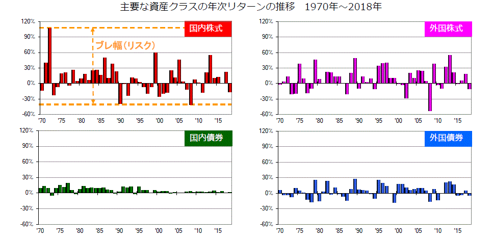 主要な資産クラスの年次リターンの推移 1970年~2018年