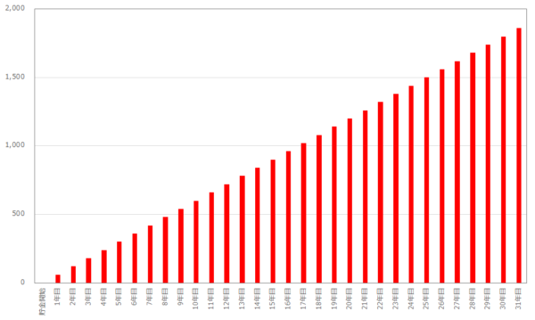 一方、預金の利回りはほとんど0パーセントです。毎月5万円の貯金を31年間も継続したとして、1,860万円にしかならないのです。3,000万円どころか、2,000万円にも届きません。