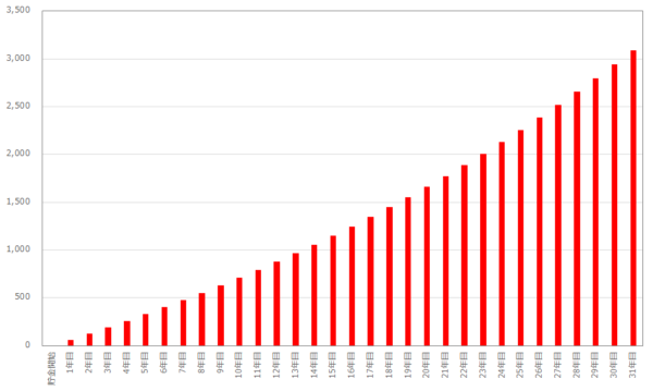 貯金するだけでも3,000万円は貯められます。ただ、かなりゆっくりのペースになってしまいます。