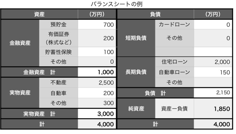 まずは、バランスシートを作成して保有資産(金融資産・実物資産)と負債の状況を確認します。