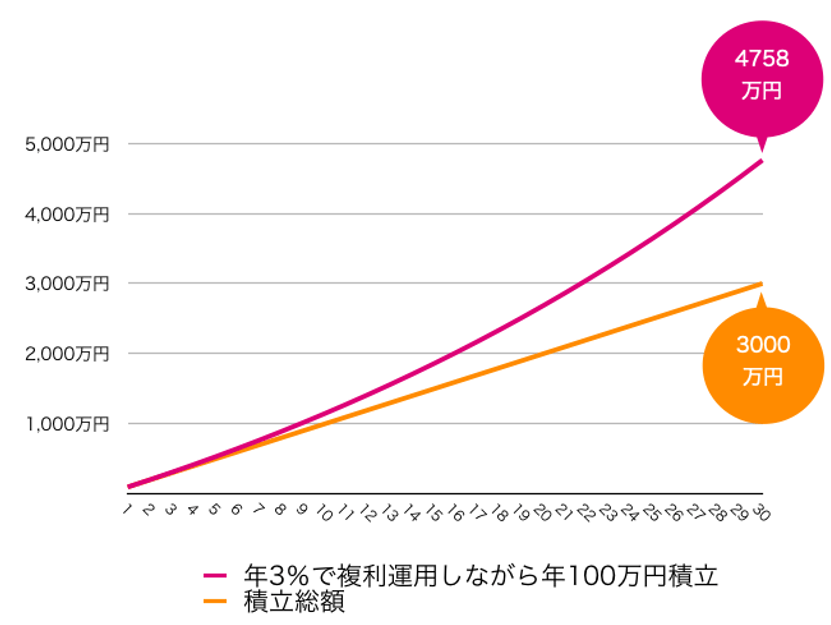 アインシュタインが人類最大の発明であるといった「複利」という仕組みです。利益が利益を生み、雪だるま式に資産が増えていくこの仕組みは、投資期間が長くなるほどその効果が大きくなります。