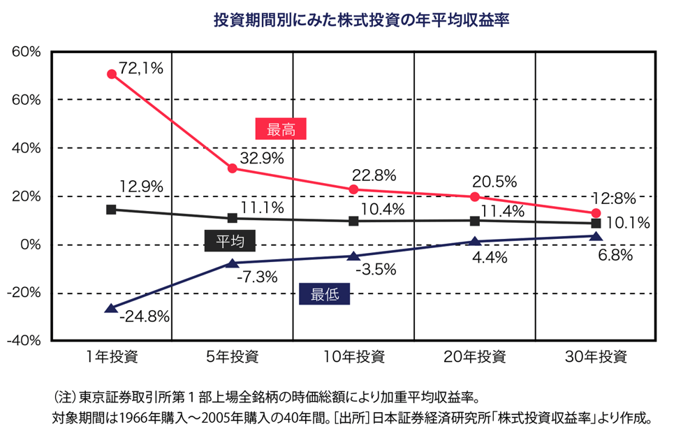 しかし、投資期間が長くなるほど収益の振れ幅は小さくなり、より安定した収益が期待できるようになります。