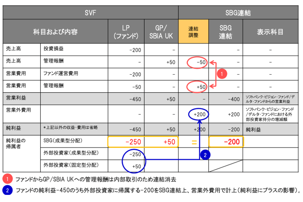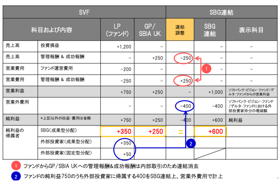 ãã¡ã³ãã®çŽå©çâ²450ããå€éšæè³å®¶ã«åž°å±ããâ²200ïŒåºå®åé å50ïŒææé ååâ²250ïŒãå¶æ¥å€è²»çšãšããŠå·®ãåŒãïŒçŽå©çã«ã¯ãã©ã¹ïŒãåäŒç€Ÿã§ããGPïŒSBIA UKïŒã®çŽå©ç50ãå ããâ²200ãããœãããã³ã¯ã°ã«ãŒããšããŠã®æçµçãªïŒé£çµïŒçŽå©çãšãªããŸãã
