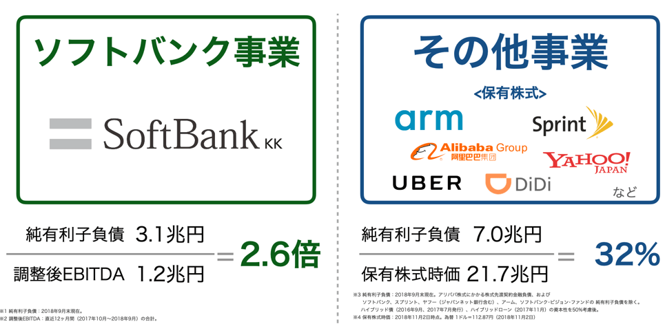 ãŸããœãããã³ã¯ã°ã«ãŒãã¯éä¿¡äŒç€Ÿãšæè³äŒç€Ÿãšãã2ã€ã®åŽé¢ãæã¡ãåäºæ¥äŒç€Ÿã®äŸ¡å€ãåèšãããããäŒæ¥äŸ¡å€ïŒæ ªäŸ¡ïŒãäœãèŠç©ãããããã³ã³ã°ãããªãããã£ã¹ã«ãŠã³ããã®ç¶æ ã«ãªããŸãã
